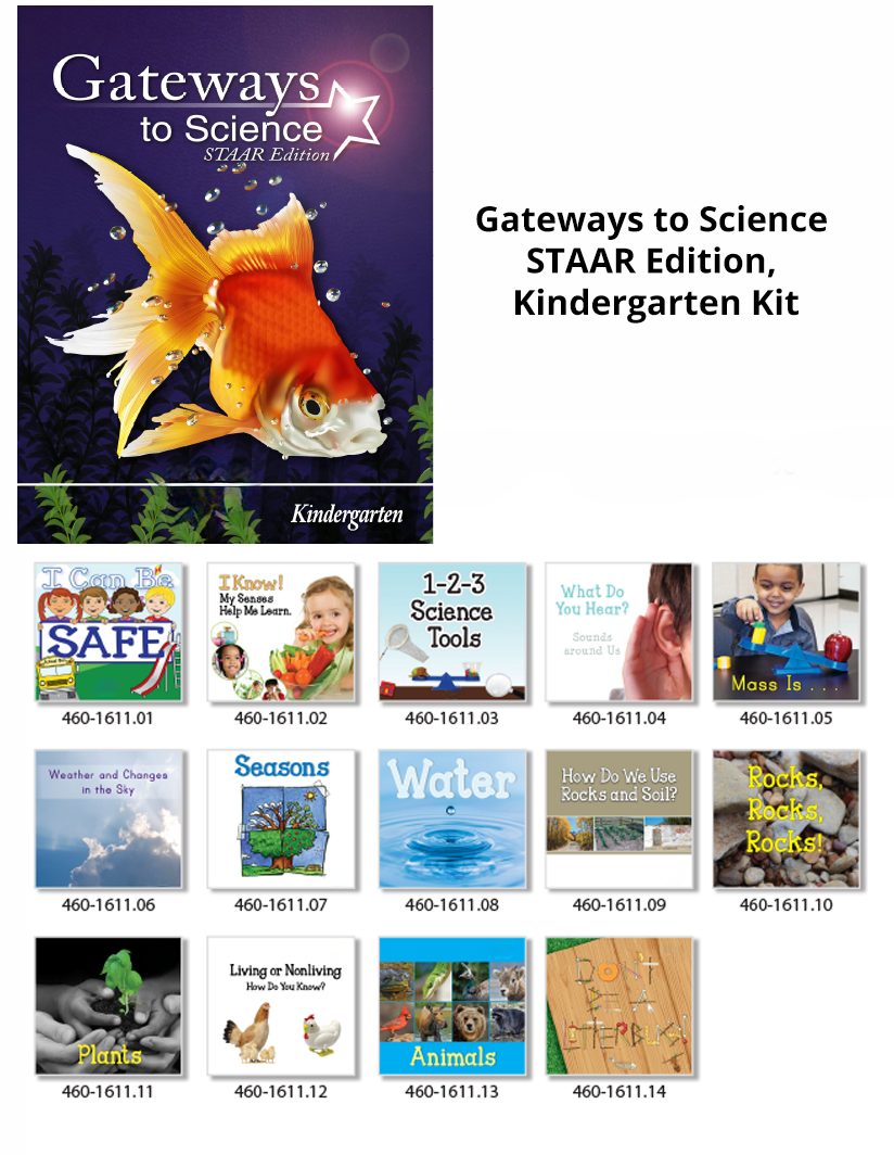 The Kindergarten Kit includes a full printed teacher edition, 14 different student literacy books (three copies of each), and a vibrant, full-color photo card library. Each literacy book features age-appropriate text and visuals to support key science concepts, while the photo cards help teach vocabulary and spark class discussions. Crosswalks are also included to show exactly which lessons align with the 2018 streamlined TEKS, making your planning easier than ever.