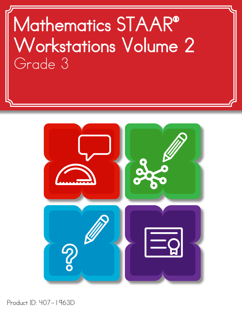Mathematics STAAR® Workstations is a student-centered review resource used to address Mathematics TEKS that, based on current data, have proven challenging for students. All activities are TEKS-based and may be used to enrich Tier I instruction or as a review at the rigor outlined by the TEKS.
