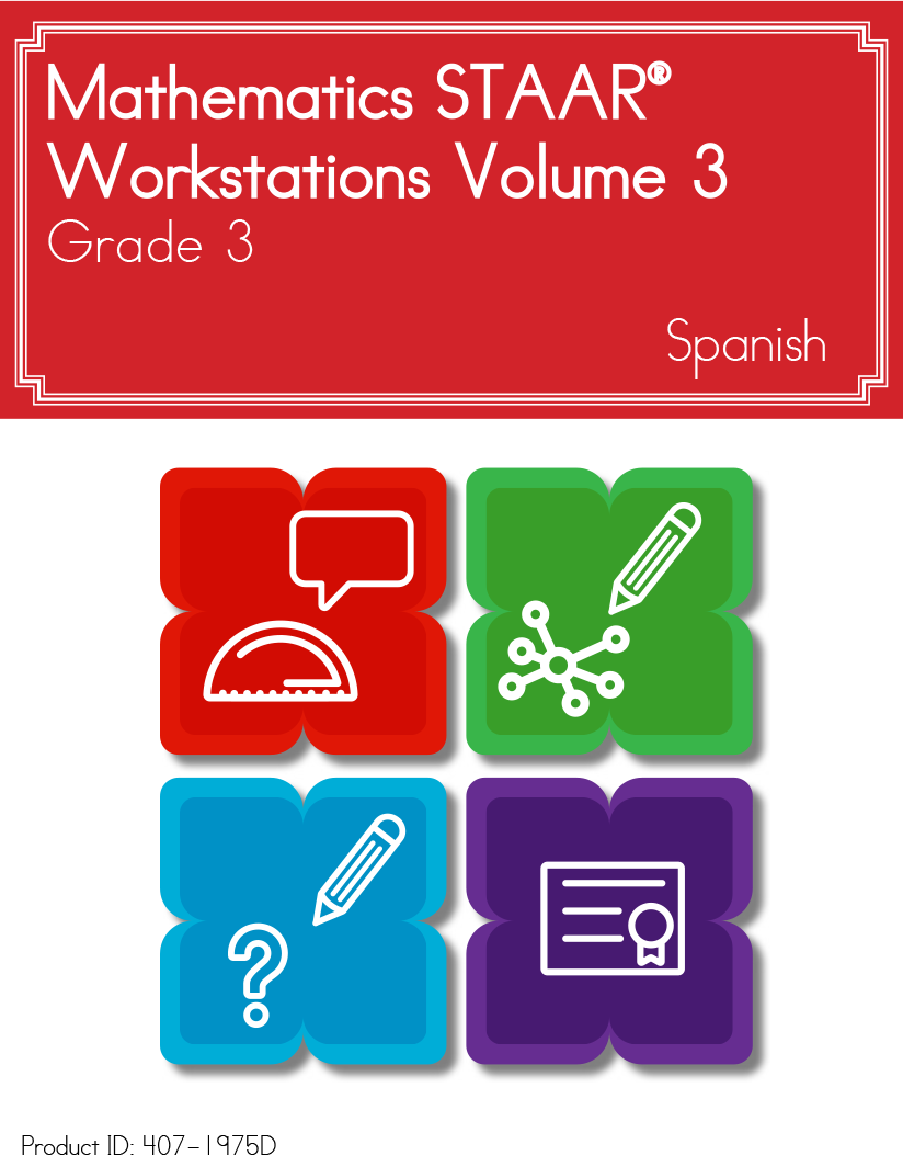 Mathematics STAAR® Workstations is a student-centered review resource used to address Mathematics TEKS that, based on current data, have proven challenging for students. All activities are TEKS-based and may be used to enrich Tier I instruction or as a review at the rigor outlined by the TEKS.